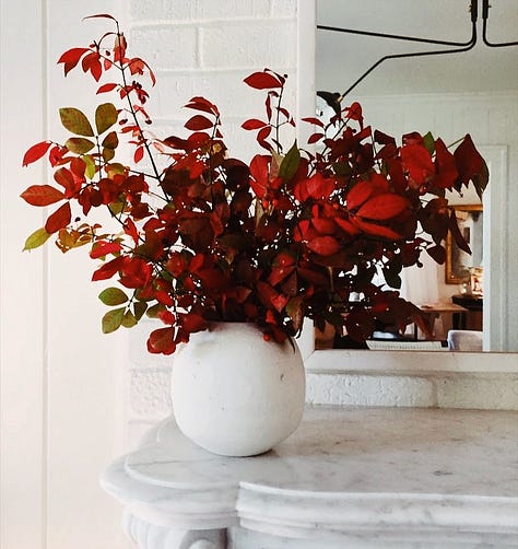 I always love a bit of a refresh in the fall. In both my home and my closet. Time to switch things out a bit. I have carefully tucked away the light linen pants that I loved in all summer and pulled out my cashmere sweaters and jackets for the cooler months. I love switching out my clothes seasonally. I always dry clean and de-pill my pieces carefully before I store them so when I bring them back out everything feels fresh and new again. I like to bring this energy into our home, too. A deep clean to mark the start of the new season is in order. Time to bring out the basket that holds the wood next to the fireplace and refresh some vignettes around the house. I also love foraging for oversized arrangements this time of year. Catching a branch mid-color change is so beautiful to me. I have “Autumn Jazz Radio” playing all through the house and I have candles in almost every space. You can shop all of the new things for fall that I’m eyeing here.